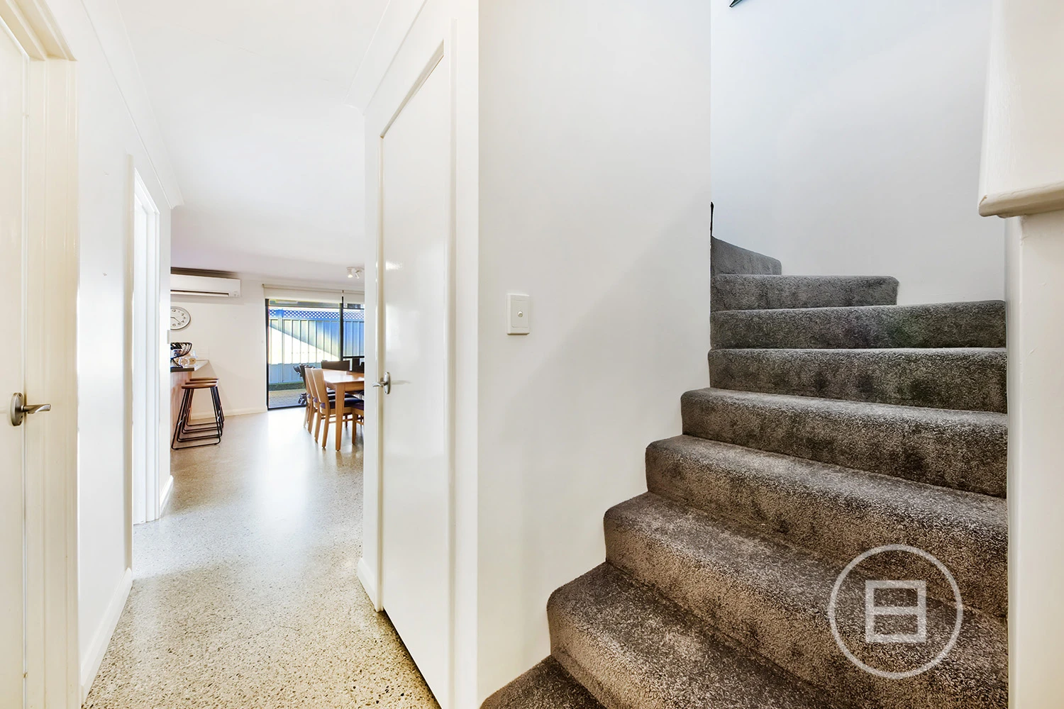 The master suite sits conveniently downstairs, offering a private retreat complete with walk-in robe and ensuite. The open plan kitchen and dining area anchors the home with plenty of storage, quality appliances, and a generous breakfast bar all framed by sliding doors that open to a spacious, low maintenance patio. Whether it’s morning coffee, weekend BBQs, or long summer dinners, this space invites easy entertaining and everyday enjoyment.