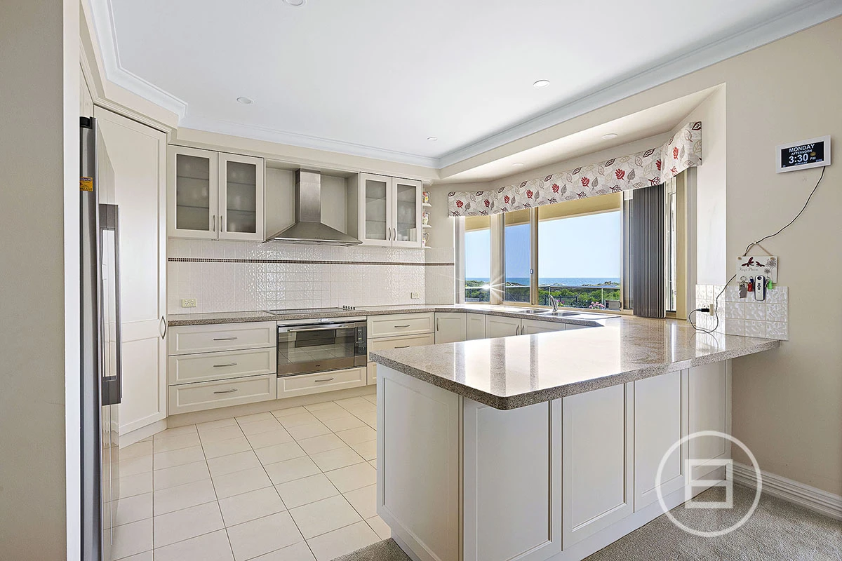 Step inside and the ocean greets you first. Double entry doors open into a breezy hallway that draws you through to the heart of the home — a family kitchen wrapped in endless blue. Fold-back doors dissolve the line between inside and out, opening to the alfresco where full ocean views deliver year-round relaxation. The adjoining lounge spills onto the enclosed rear garden, creating a calm and sun-drenched retreat.