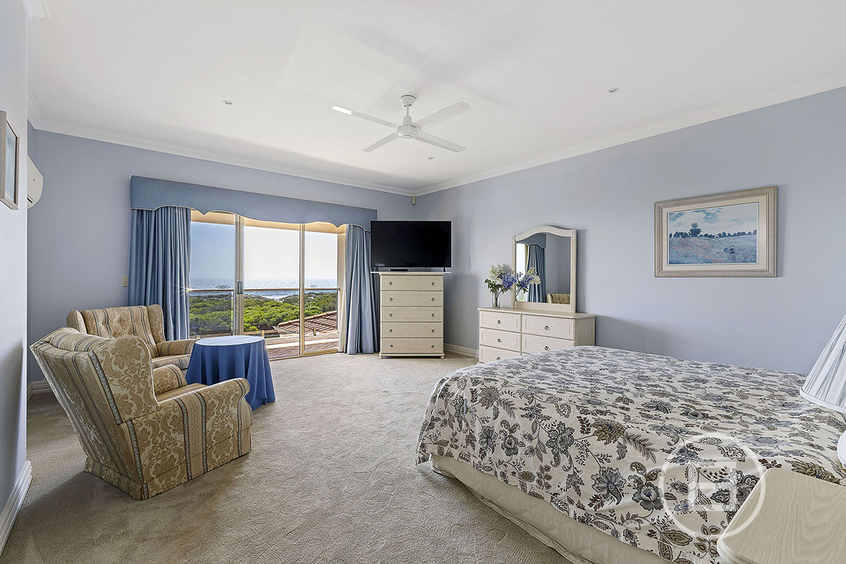 Elevated on the third level, the master suite commands its own horizon. With sweeping views across the dunes and ocean, a generous walk-in wardrobe and a light-filled ensuite, this is your private coastal escape. A second bedroom sits alongside, making an ideal nursery, home office or flexible space with built-in robes.