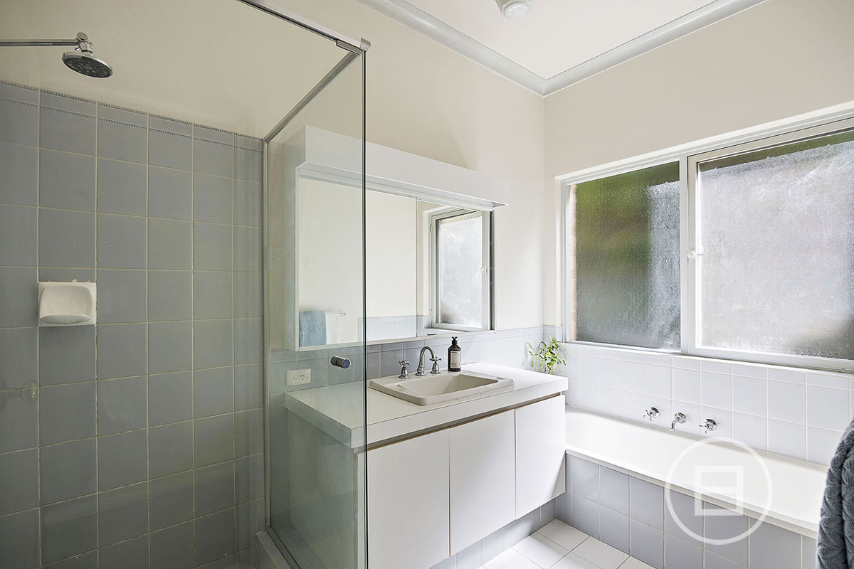 4 peaceful bedrooms (plus a substantial home office that could easily be used as a 5th bedroom) are serviced by two well-appointed bathrooms—one with classic checkerboard tiles, the other with a walk-in shower and separate bathtub. The internal laundry offers excellent storage, while a basement room provides flexible space for a cellar or extra storage.