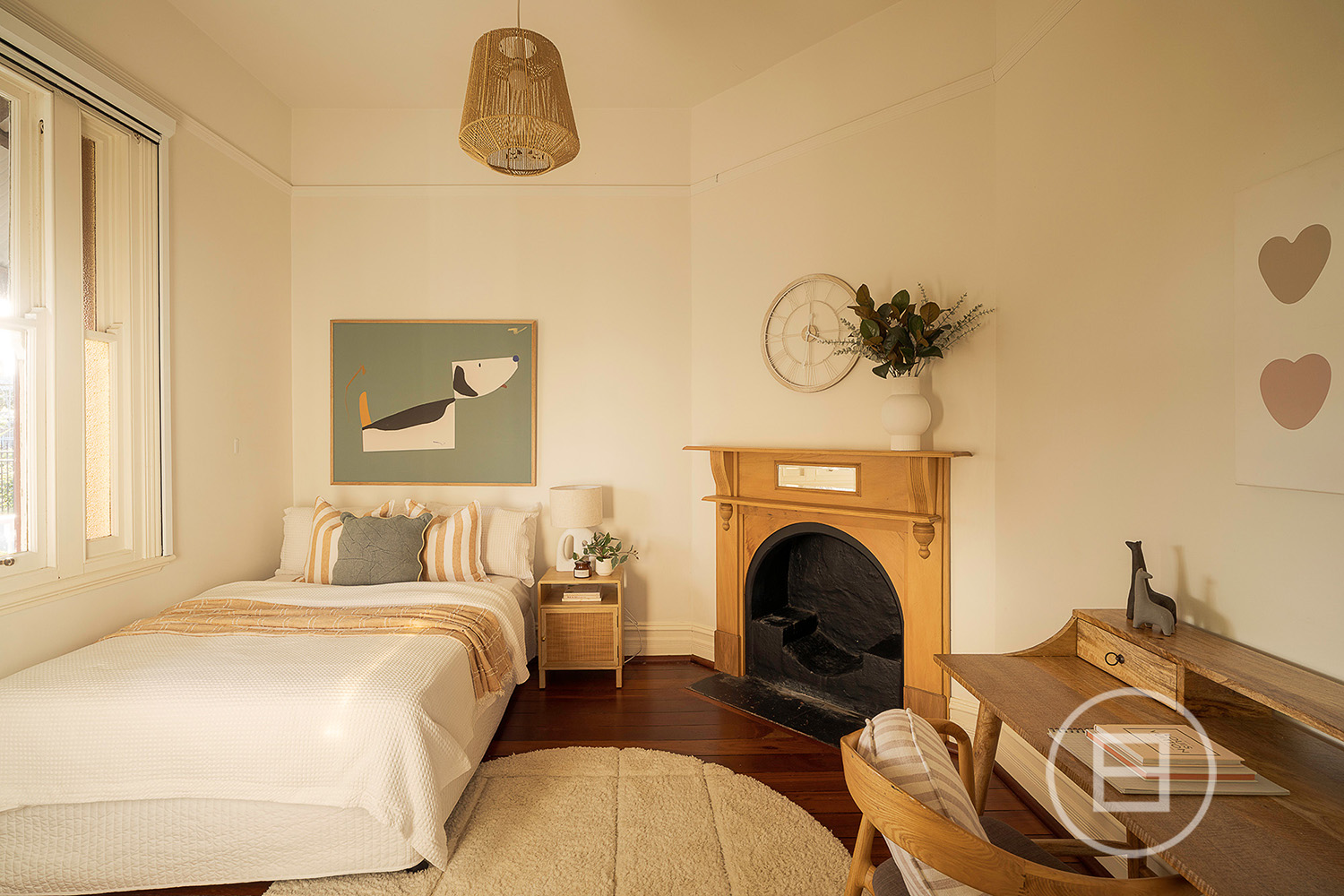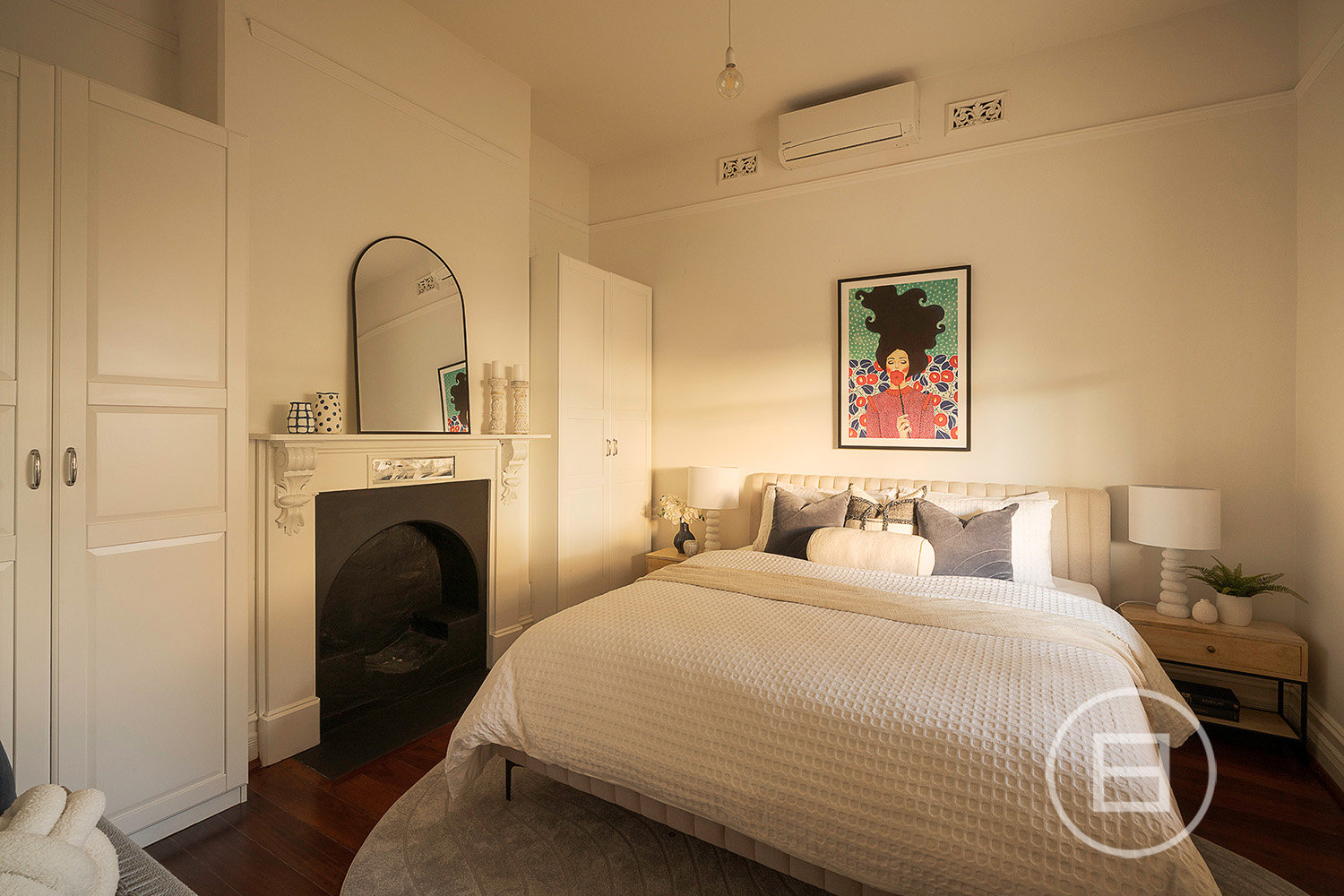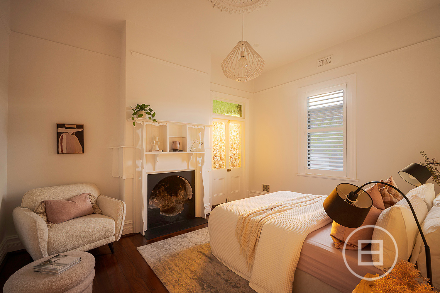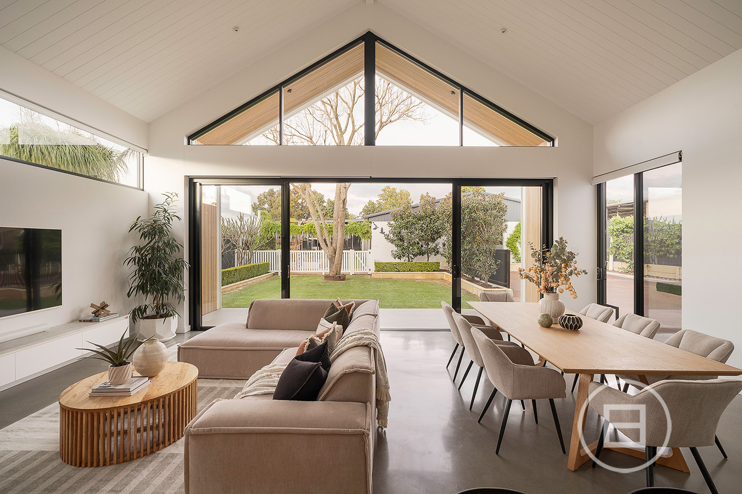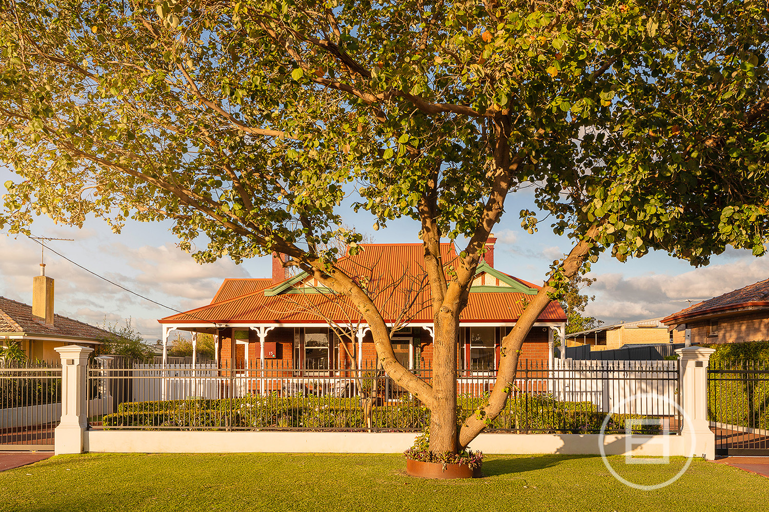 Inside, four principal rooms showcase wide jarrah floorboards, soaring ceilings and three fireplaces, all testament to the home’s remarkable preservation across 111 years. Decorative leadlights and coloured glass enhance the historic character, while the transition to expansive open-plan living, dining and kitchen zones crowned by cathedral ceilings reflects a home designed for both everyday living and entertaining. From here, doors open to a broad covered patio and shady landscaped gardens, creating a private retreat at the heart of the property.