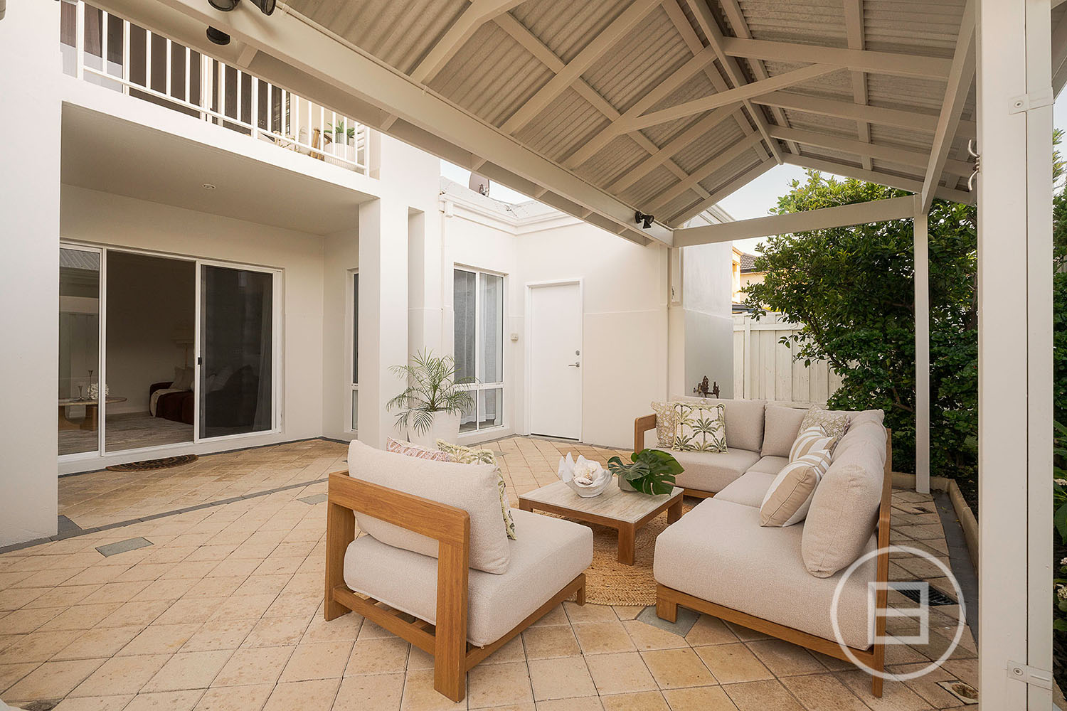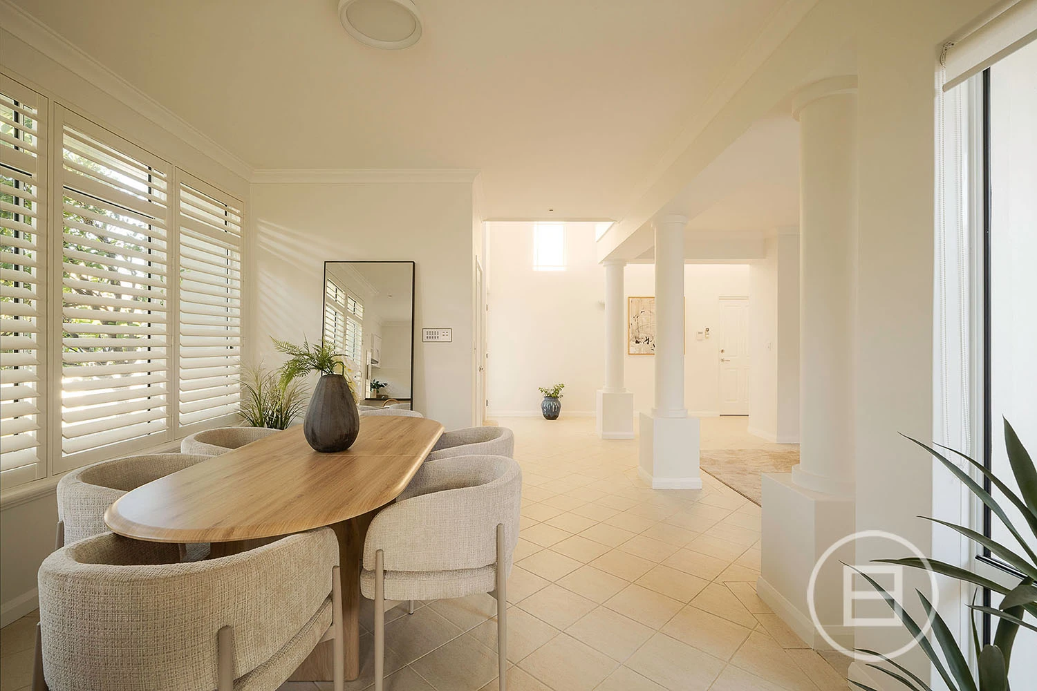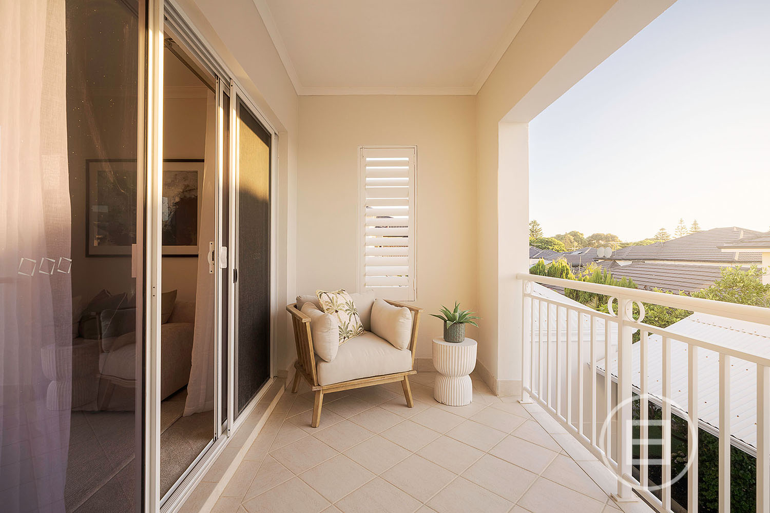 Upstairs, a well-sized activity room provides a flexible retreat ideal for a media space, home office, or children’s area. Two private balconies extend the upper level, offering quiet spots to unwind and enjoy fresh air. Venture up to the turret via the staircase and be met with panoramic views over yachts, the sunset and on bluebird days, Rottnest Island.