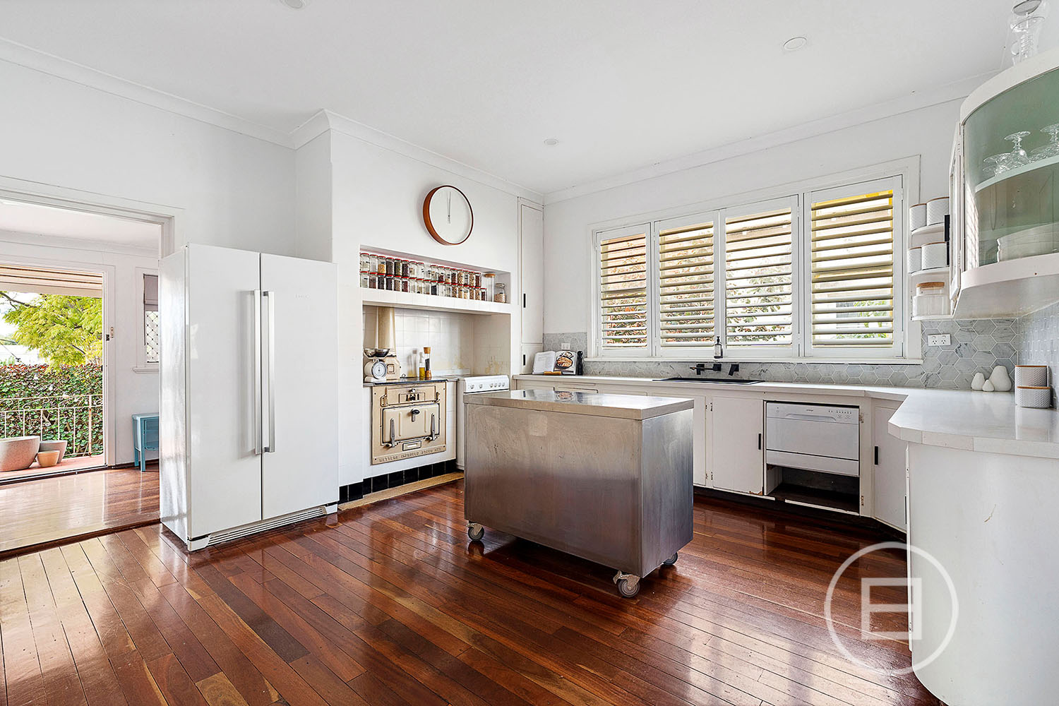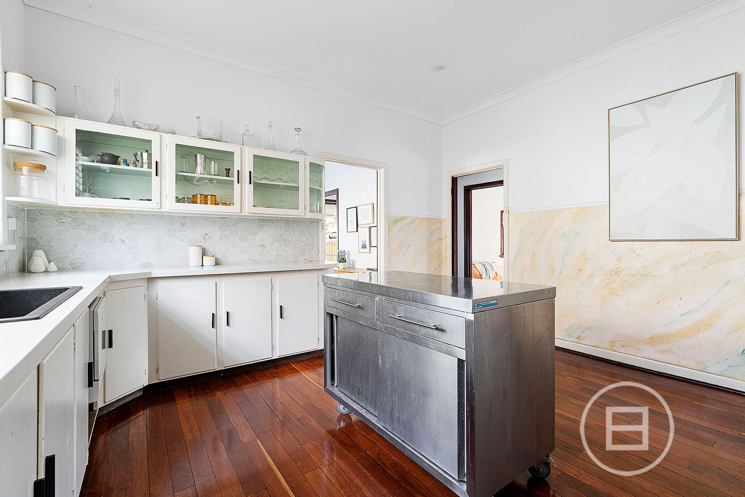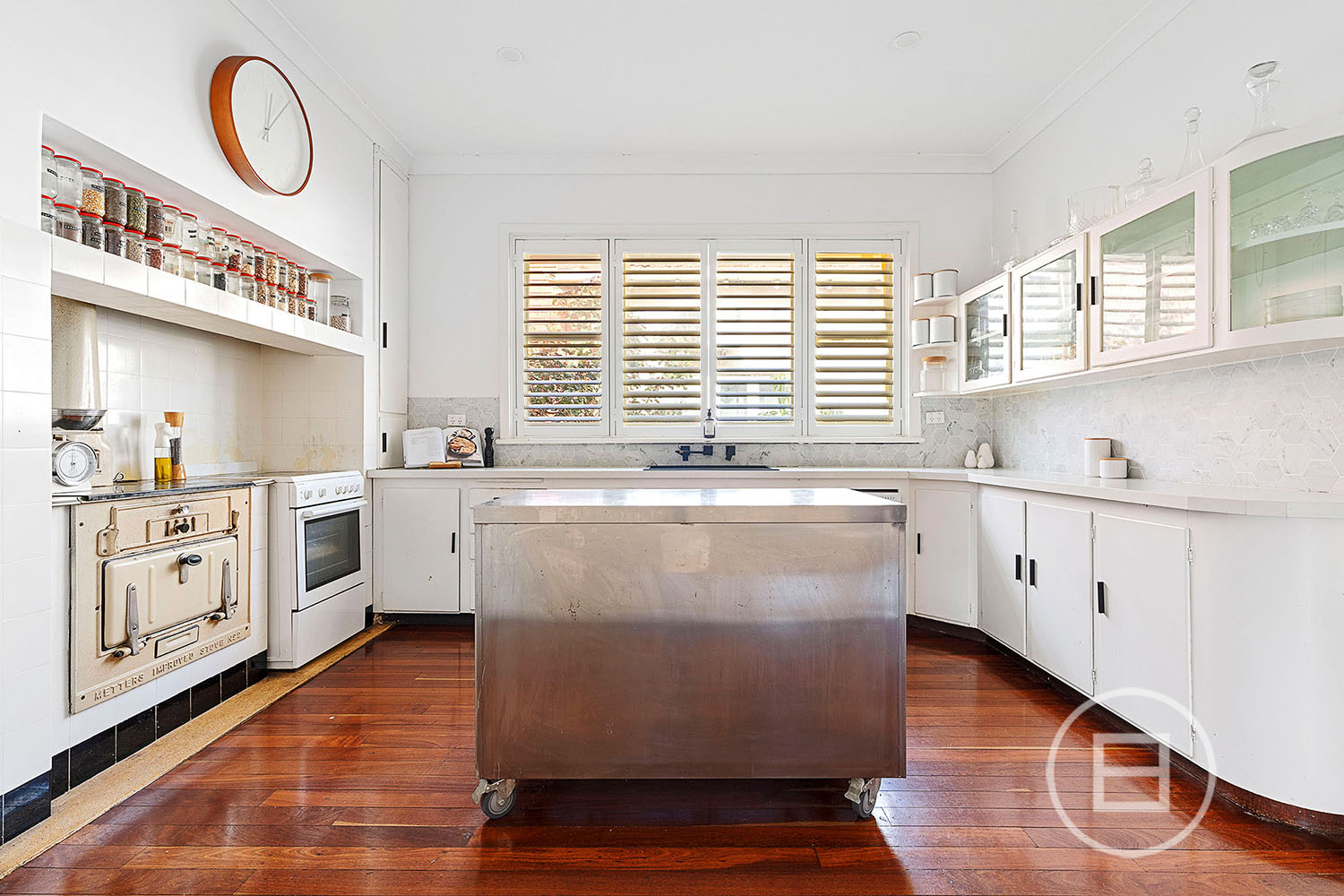 The heart of the home is the expansive industrial-style kitchen, equipped with the original Meters stove, curved glass display cabinets, and a modern splash back. This kitchen is a dream for any culinary enthusiast, offering a blank canvas to renovate and truly make it your own.