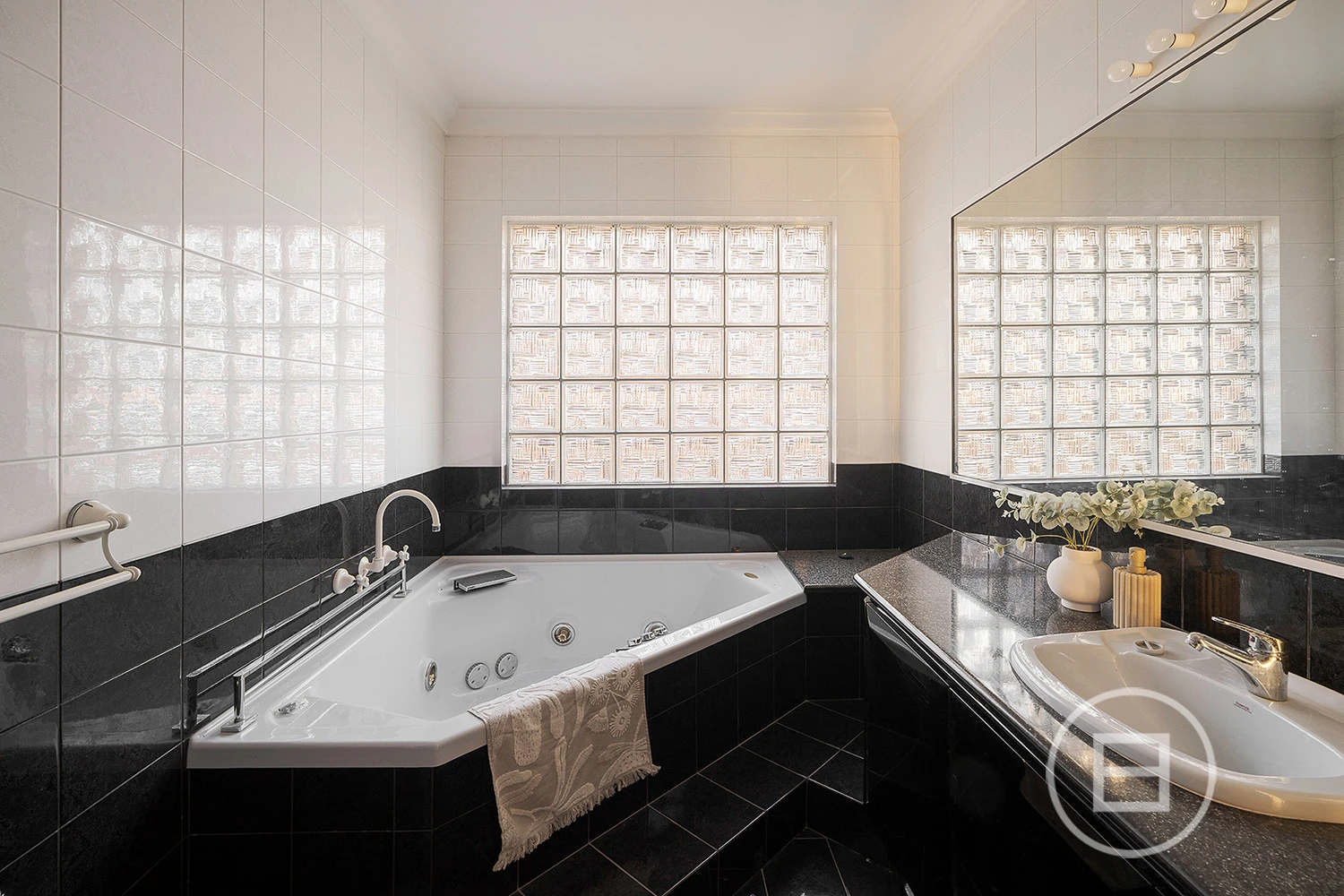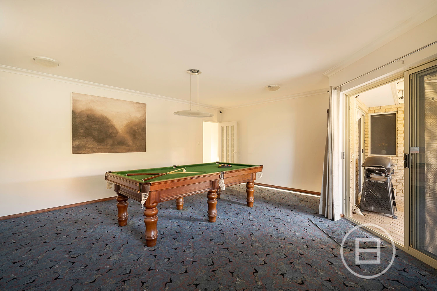 The home is equipped with a wealth of modern comforts, including a 16-camera CCTV system with phone connectivity, a Chubb alarm, valet ducted vacuum, and a laundry chute. Lifestyle extras abound, from the cellar and pool room with pool table included, to the gym space with sixth-bedroom potential, plus an additional storage unit in the garage. Practical enhancements such as a reticulation system, solar-heated water, two side gates, and a full brick fence further elevate everyday living.