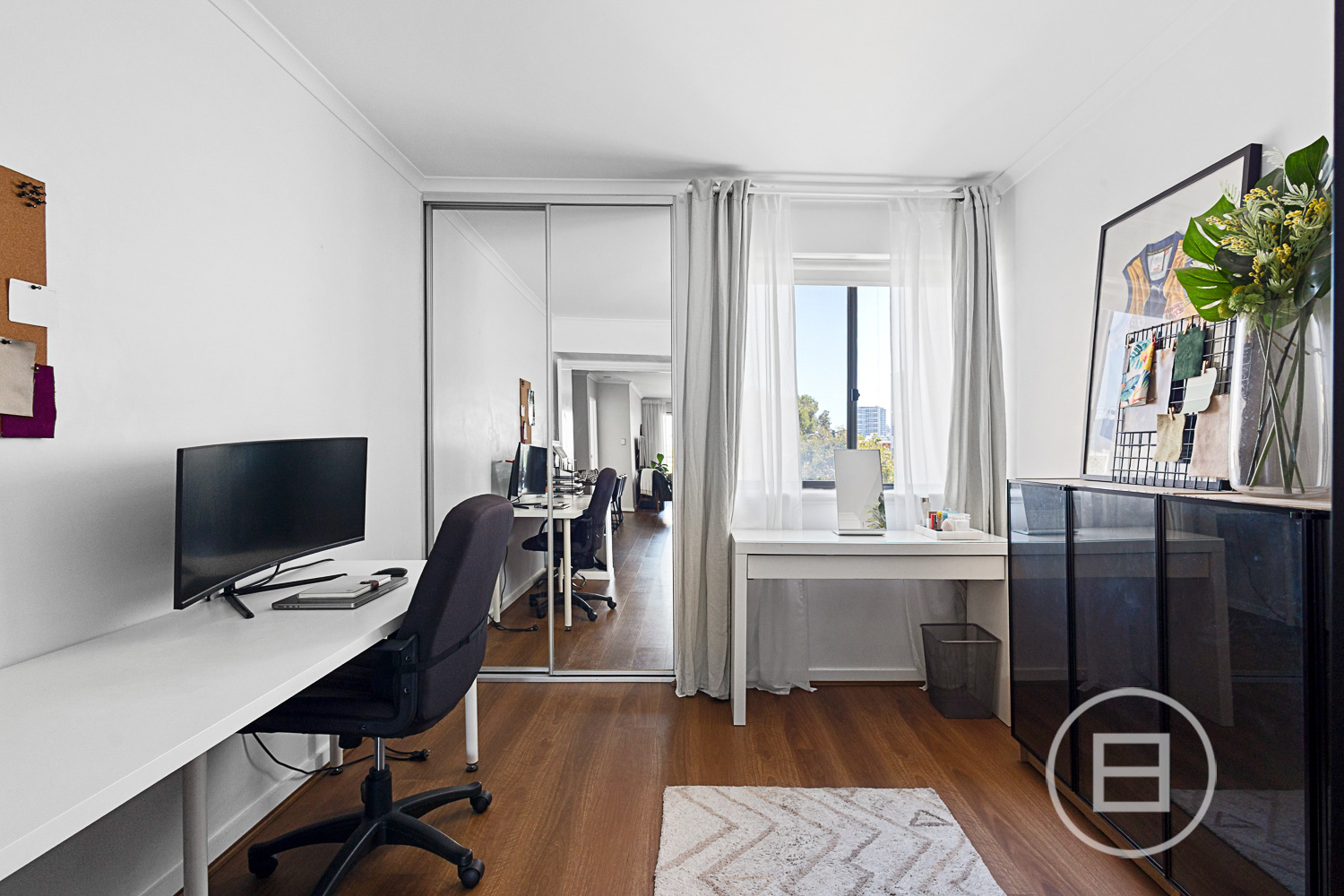 Inside the apartment, contemporary finishes and abundant natural light create a haven of comfort and style. The spacious master bedroom features soft carpets, built-in mirrored wardrobes, and full-length curtains for privacy. The deluxe ensuite boasts a walk-in shower, and generous under-sink storage, all illuminated by a full-width mirror. Both minor bedrooms are well proportioned with large windows and built-in mirrored robes, easily adapt to changing needs—be it restful sleep, productive work, or a creative space. The 2nd bathroom/laundry is well presented and proportioned.