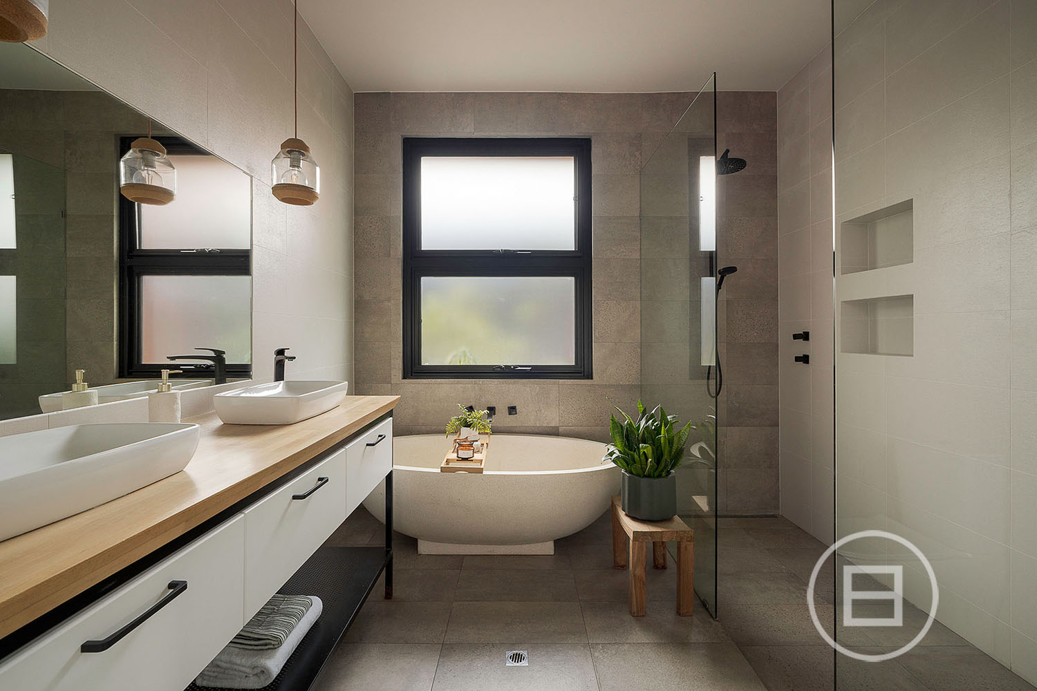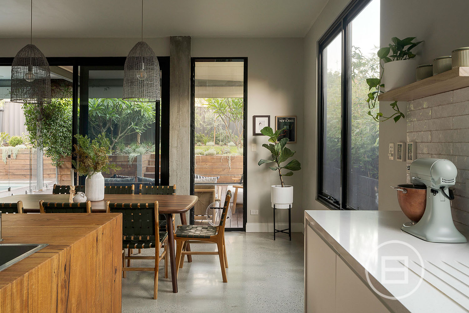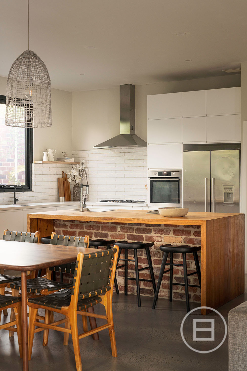 Open-plan living and dining spaces are elevated by exposed brick, oversized windows, and sliding glass doors, creating an effortless flow to the outdoors. The contemporary kitchen sits at the centre, anchored by a custom local Marri timber island bench with waterfall edges, extensive cabinetry, stainless steel appliances, and a walk-in pantry, perfect for gatherings and everyday routines. Additional features include a separate living/media room, a designated study with built-in desk and bookshelves, stylish powder room, and abundant built-in storage throughout.