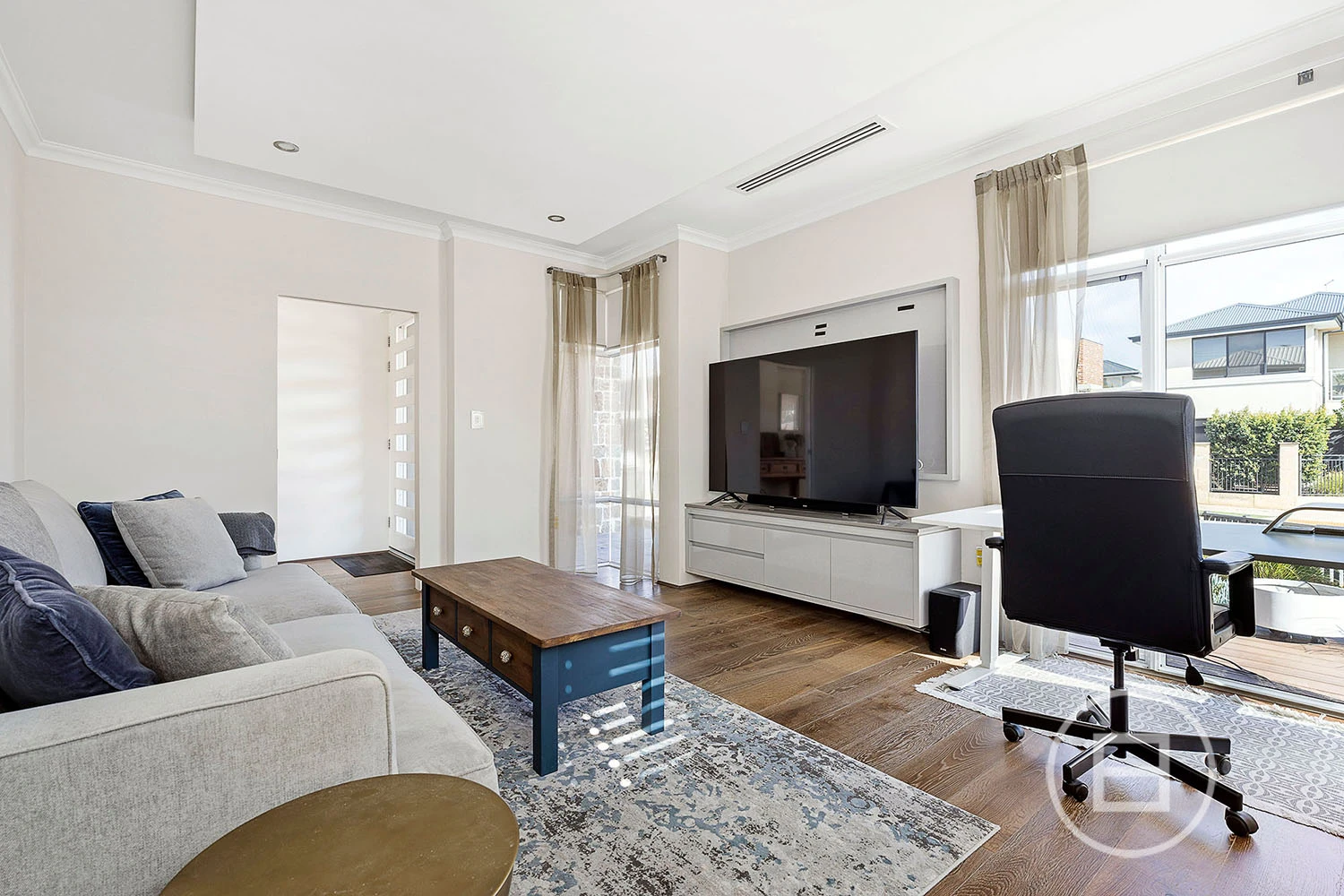 From the ground-floor master suite with its spa-inspired ensuite and private courtyard to the spacious three kids' bedrooms upstairs, every detail caters to family comfort and style. Engineered timber floors, reverse-cycle heating and cooling, a study with a built-in desk, and a double-height entrance hall ensure functionality and flair. Complete with landscaped gardens, a powder room, and a double remote garage with internal access, this home also offers unmatched convenience with proximity to the beach, top schools, shopping hubs, Cockburn Central Train Station, Cockburn Aquatic and Recreation Centre (ARC), and freeway access—your ideal lifestyle awaits.