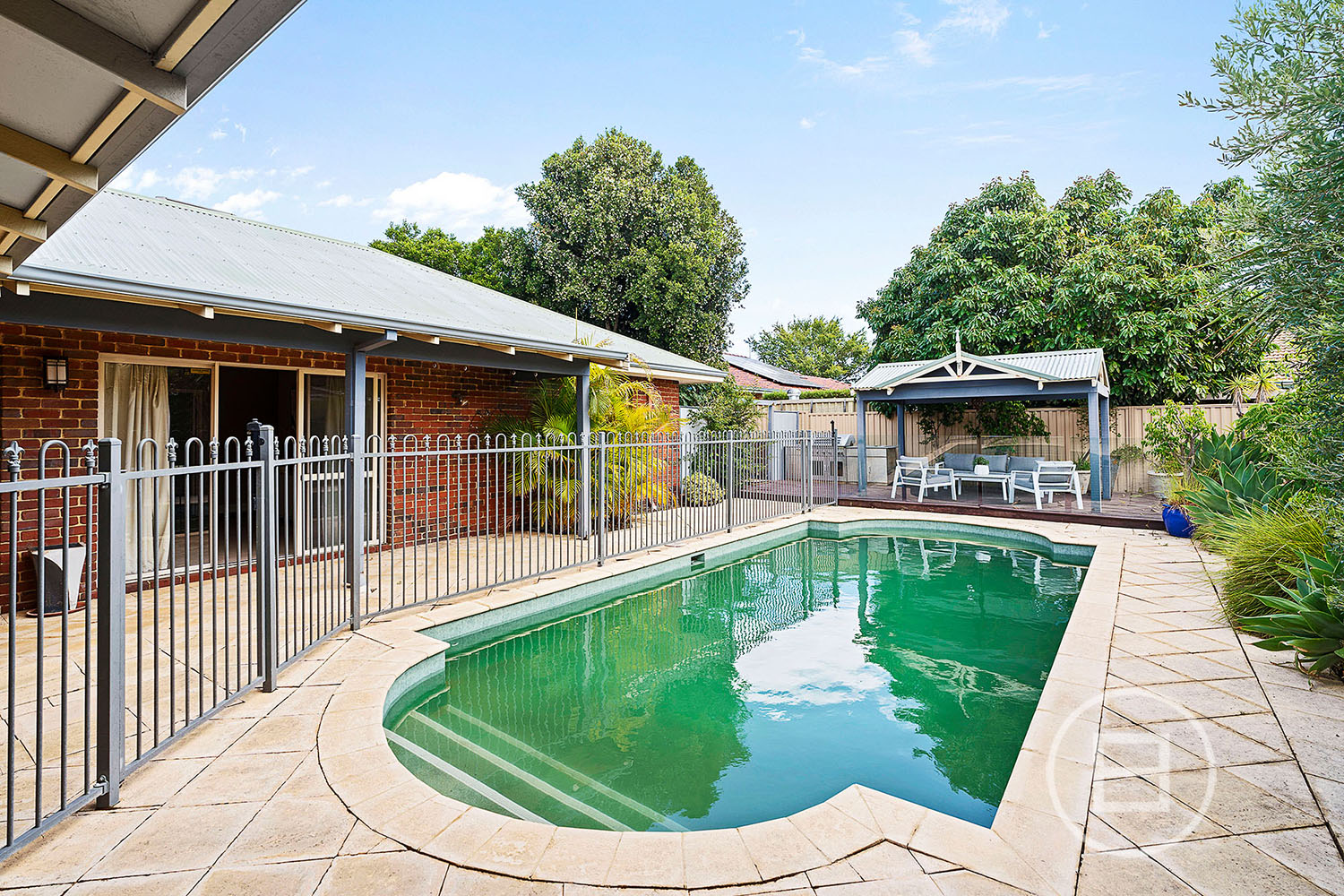 Outside, the rear verandah and alfresco entertaining area wrap around a sparkling swimming pool, where a poolside gazebo, deck and built-in barbecue create the ultimate backyard retreat. With skirting boards, ornate ceiling details, ducted air-conditioning, a fireplace, security doors and a large double lock-up garage with side storage and covered shopper’s access via the kitchen, this superb family haven is packed with features in a sought-after pocket of the suburb.