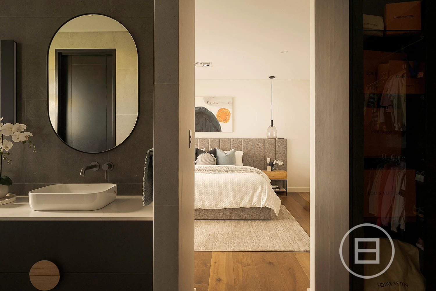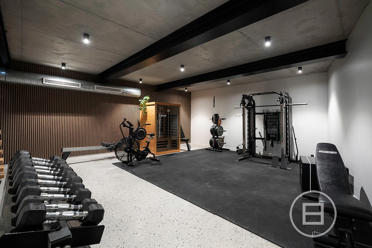 Three stunning bathrooms accompany four large bedrooms, each with a walk-in robe, including the larger and more private main suite, which features a decadent dressing room and dual vanity en-suite. An activity room and kids retreat add welcome separation, while a study beneath the glass ceiling boasts custom storage perfect for uninterrupted work. Additionally, there’s a large gym downstairs, a full mudroom and laundry and high-end appointments, including reverse-cycle heating/cooling, solar panels, a powder room, engineered oak floors, luxe carpets, and a double remote garage with internal entry.