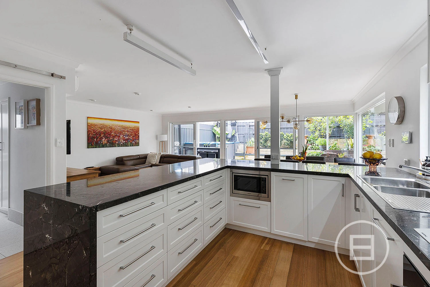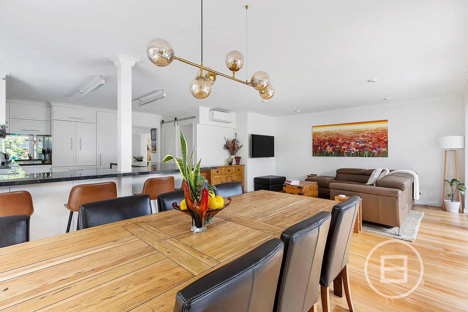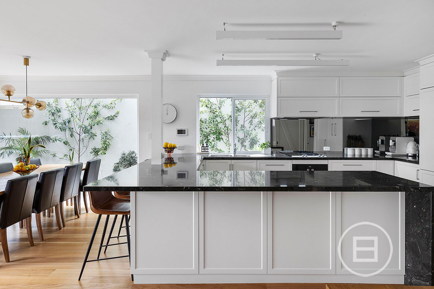The kitchen impresses with high-end appliances, stone finishes, and considered storage, designed for both everyday ease and elevated hosting.