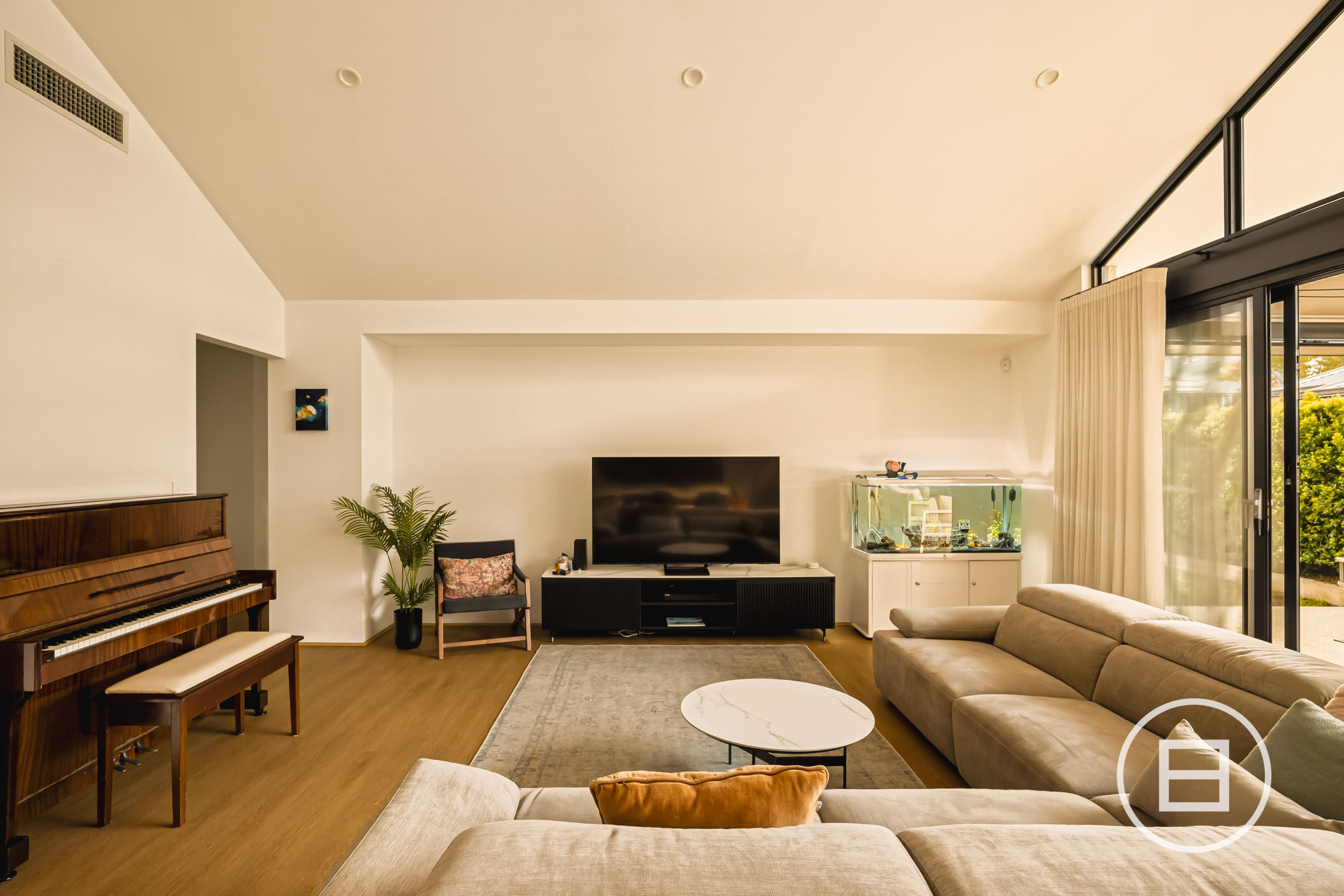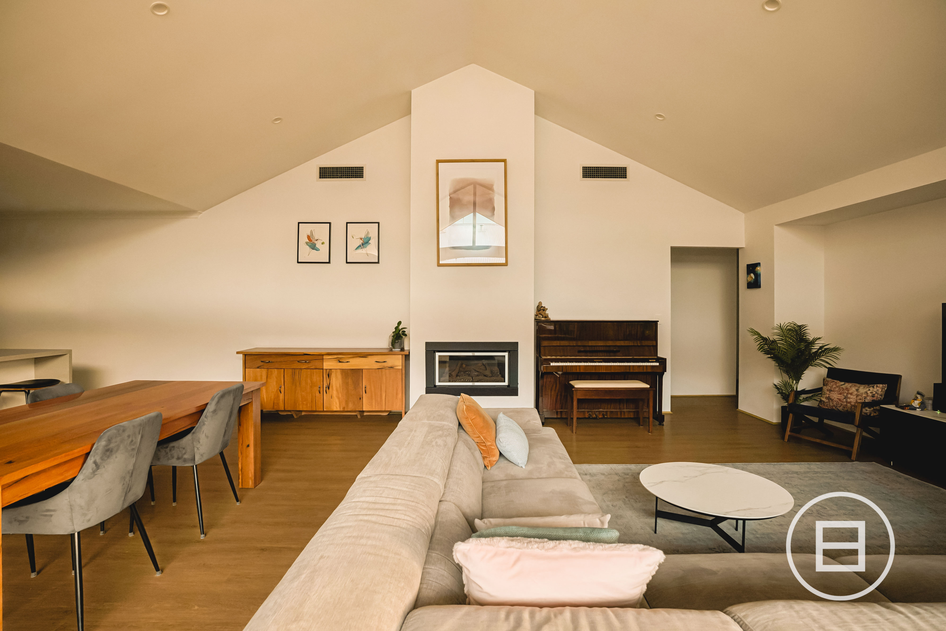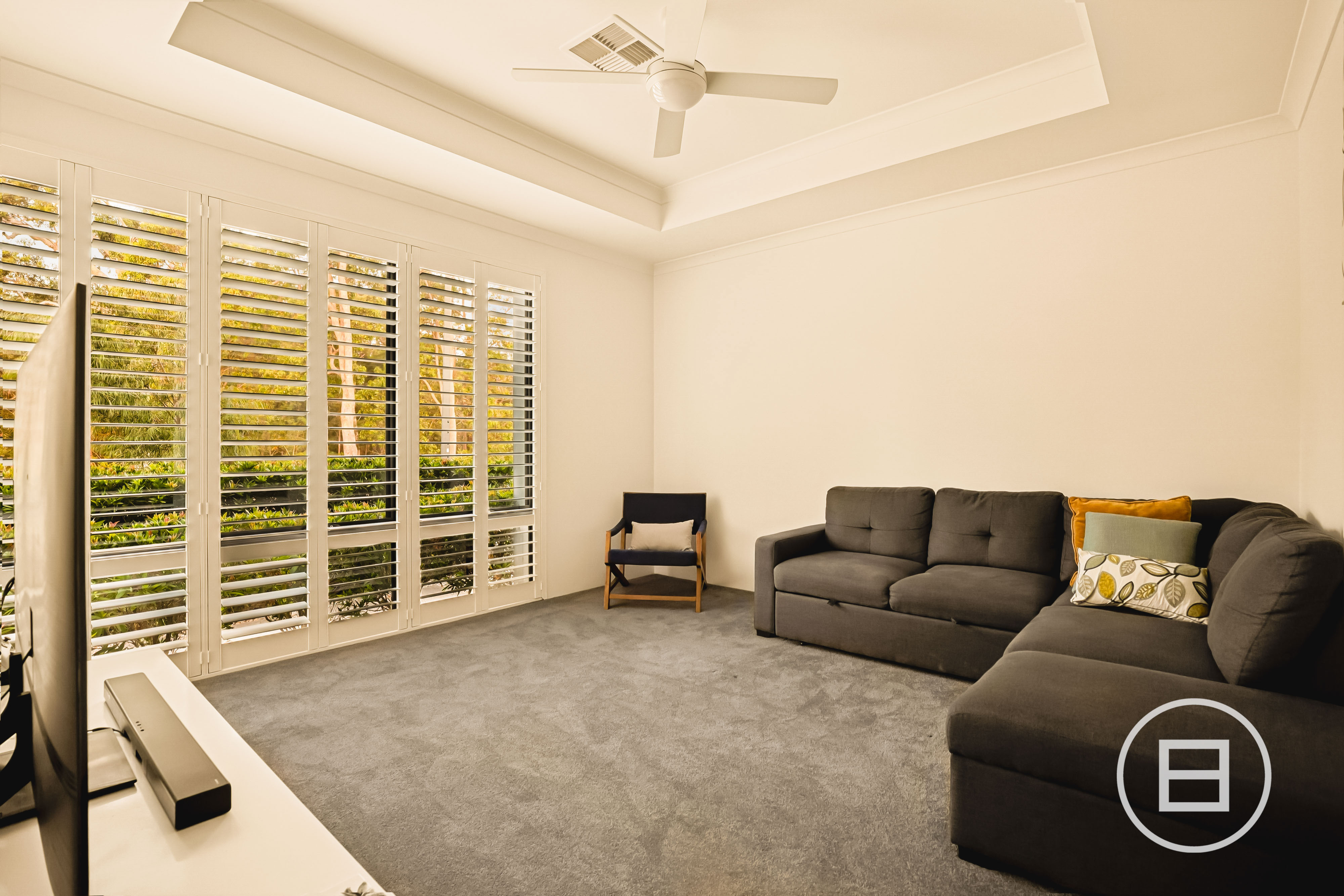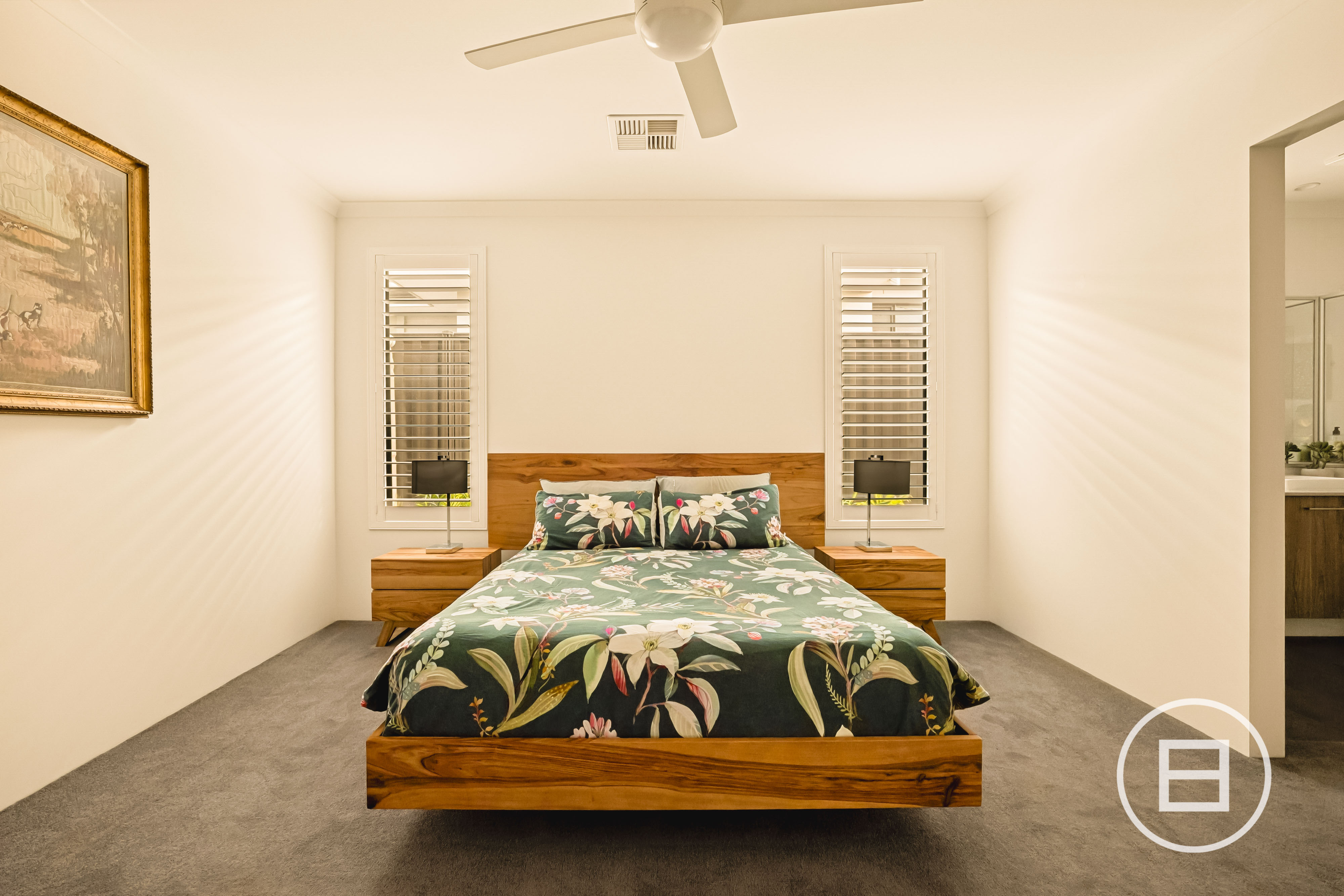 Every detail has been thought through, from the smart wiring and extensive power points to the Fermvision doorbell, intercom/camera system. A solar setup with 6.6kW panels and a 5kW inverter, rainwater tank plumbed to the laundry and toilets with automatic mains changeover, gas log fireplace, zoned reverse-cycle air-conditioning, ceiling fans, stone benchtops to all wet areas, a fully fitted laundry, internal and external storage, exposed aggregate to the driveway and caravan bay. It’s all here, already done.