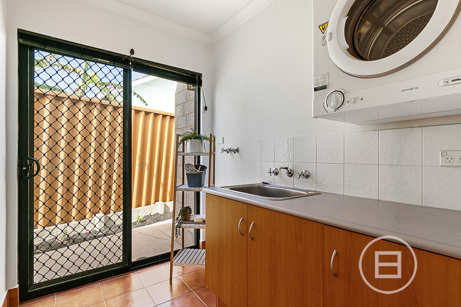All three bedrooms are generous and restful, each with soft carpet underfoot and abundant daylight. The master suite is a luxurious retreat featuring a large walk-in robe and a private ensuite, while the additional bedrooms offer built in wardrobes and easy access to the homes living spaces. Bathrooms are finished in a clean, minimalist style with mosaic tile accents, large vanities, glass-screened showers, and a lovely bathtub in the 2nd bathroom. The laundry continues the practical appeal with built-in cabinetry, utility sink, tiled floors and direct courtyard access via a secure sliding glass door.