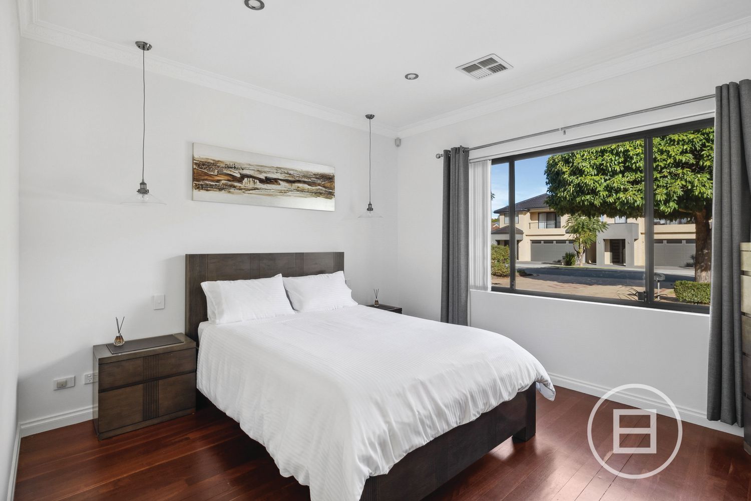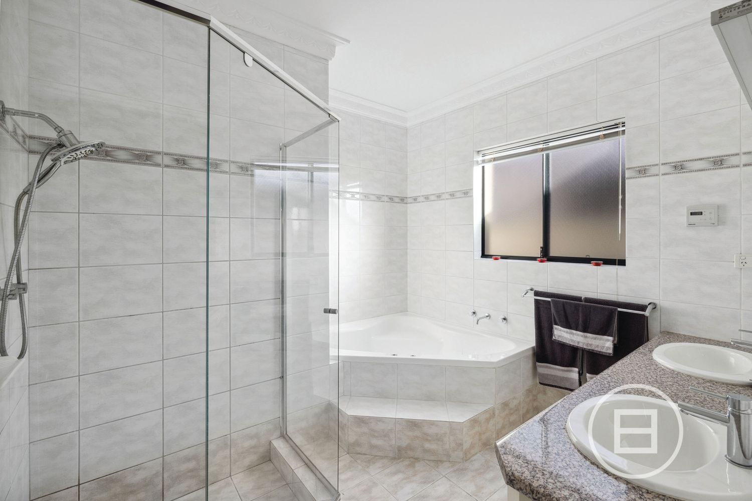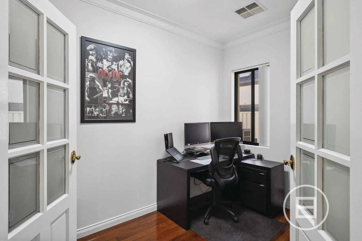The bedrooms are generously sized, with all boasting timber flooring & large windows allowing fantastic natural light. A dedicated study / home office with double French doors offer space to work or study in peace. Both bathrooms are designed for comfort and style, featuring floor-to-ceiling tiles, double vanities with ample storage and a corner spa bathtub in the main bathroom.