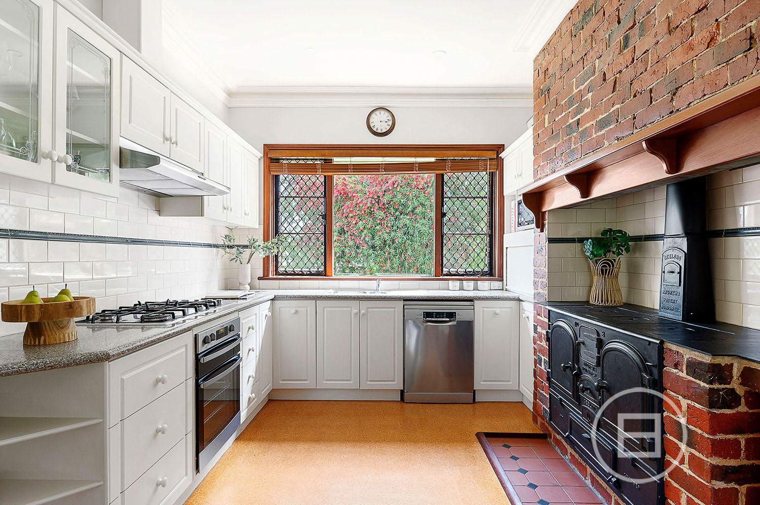 Step inside, and you'll find solid cedar windows framing views of the expansive backyard, while the kitchen boasts high-end fixtures including a Mettam’s oven, a five-burner gas hob, an electric Westinghouse oven, and a Bosch dishwasher—a dream for those who love to cook. The living room, complete with a gas log fireplace, offers a warm and inviting atmosphere.
