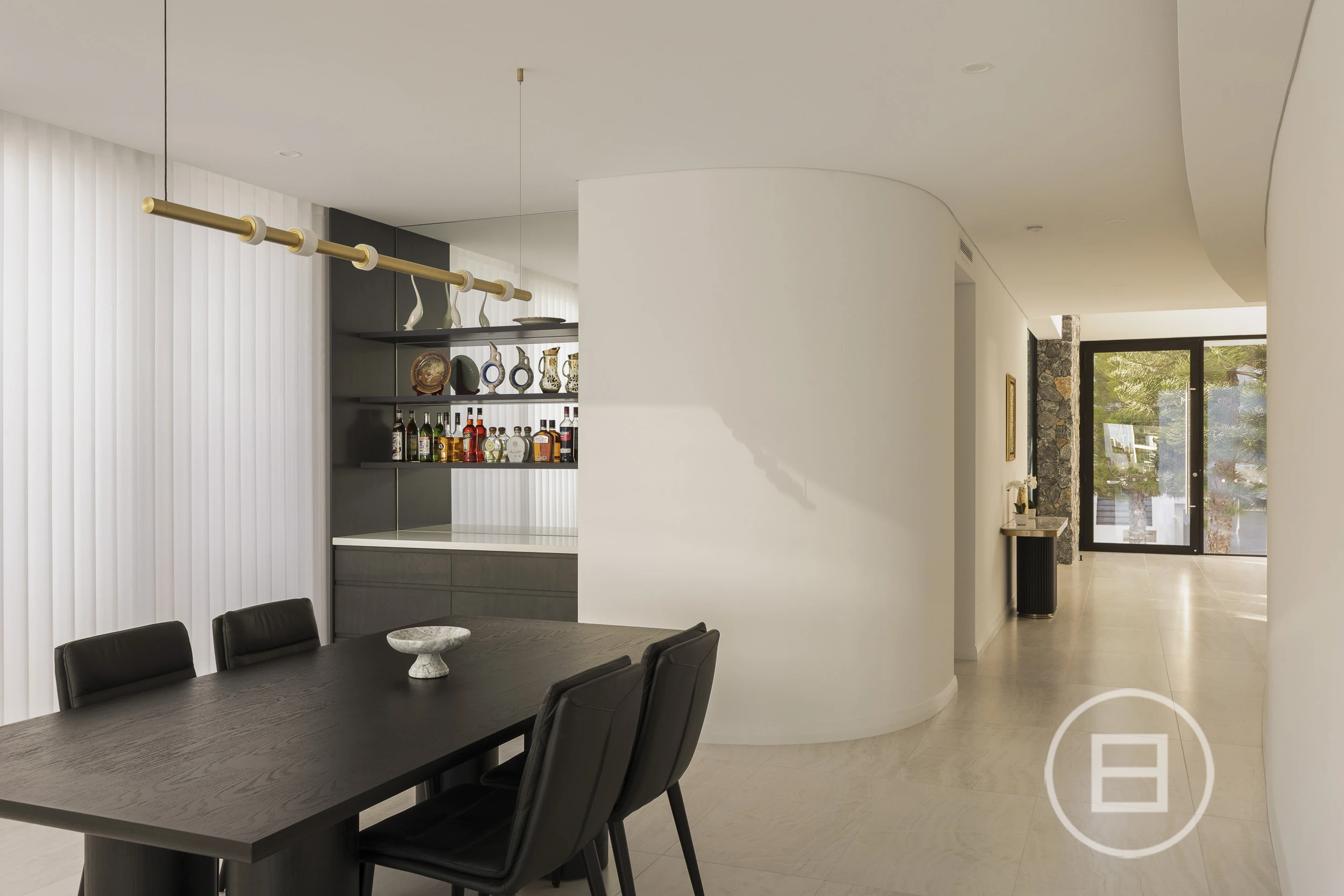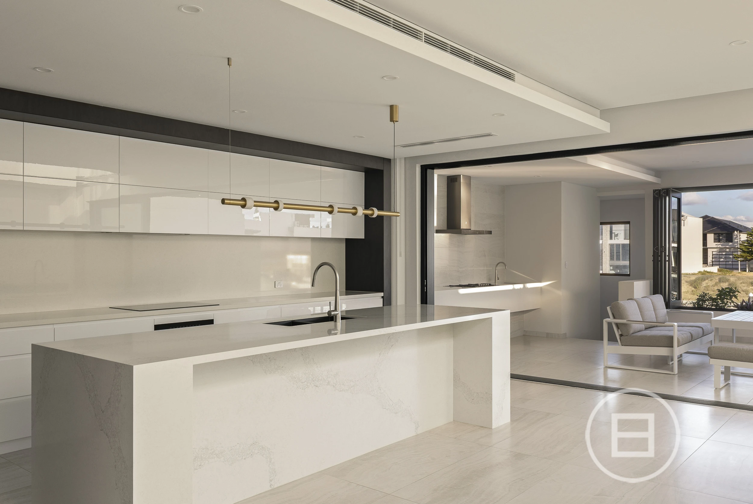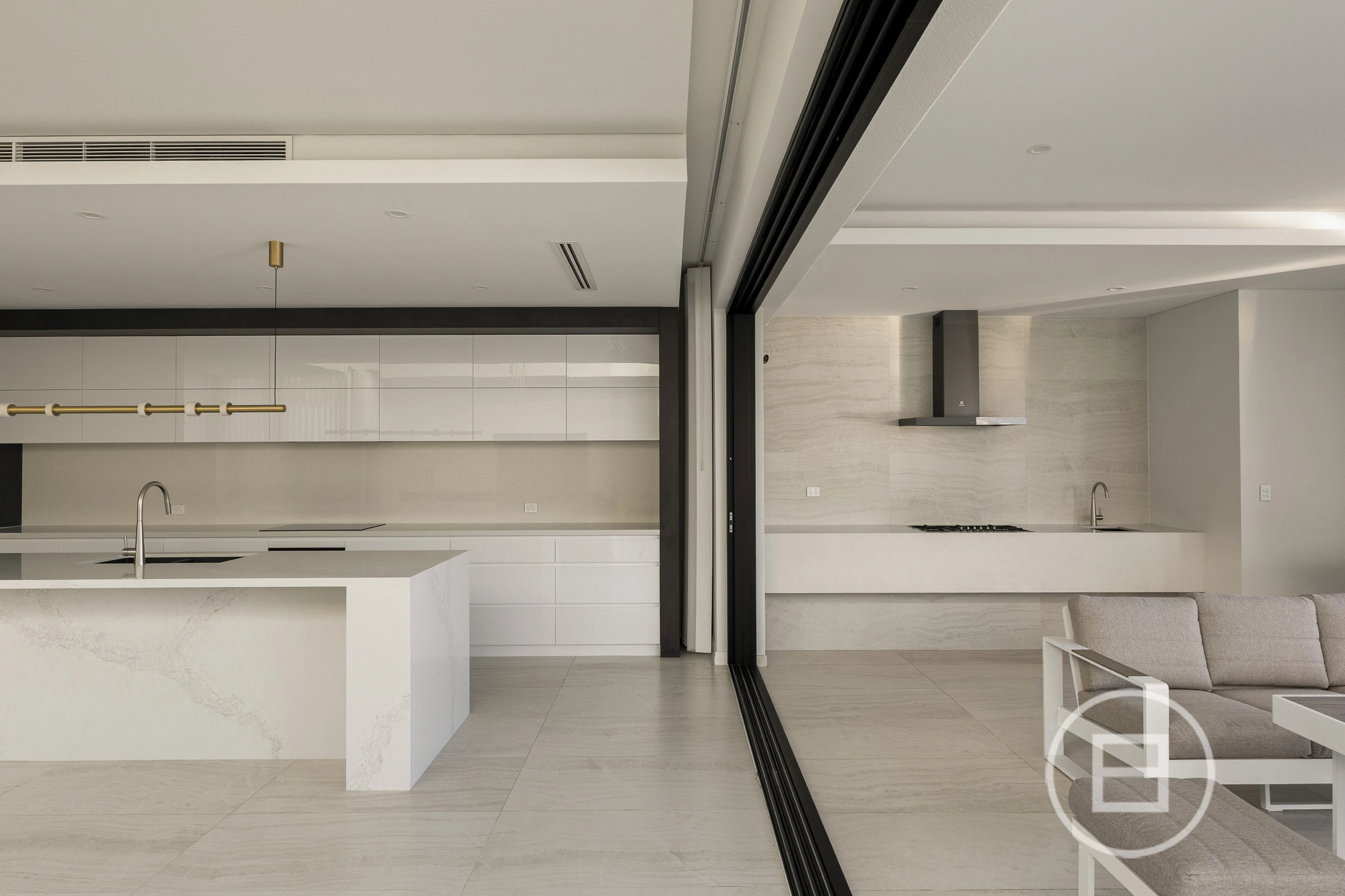 Designed for year-round comfort and efficiency, the home features full reverse cycle air-conditioning, a high-performance German heat pump system and solar panels for a more sustainable lifestyle. Ambient LED strip lighting is thoughtfully integrated, highlighting architectural features and creating a sophisticated atmosphere, while Cobram natural stone forms a stunning visual link from the exterior façade through to the interior spaces, delivering a cohesive and timeless finish.